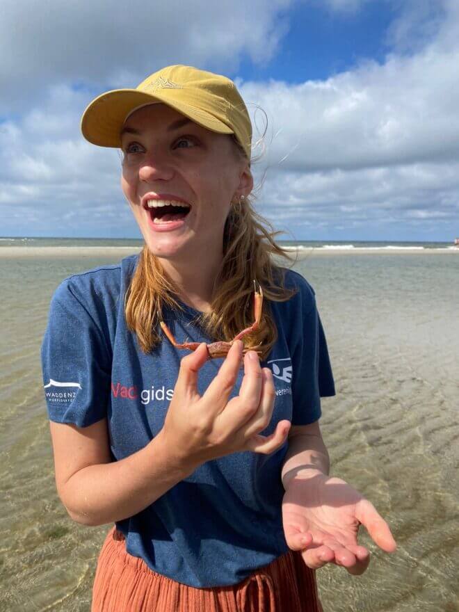 Ons rooster wordt bepaald door het getij: die schrijft ons voor wanneer de excursies plaatsvinden. Verder is het aan ons om die dag het programma goed te laten lopen. Ik leer als persoon samenwerken, organiseren en uitvoeren. Het geeft veel voldoening om samen met de groep wadgidsen een mooie excursie-dag neer te zetten. Het voelt ook alsof je iets teruggeeft aan het Waddengebied. De gasten zetten aan het begin van de excursie onwennig hun eerste stappen in het slik, maar hebben na afloop zoveel verwondering voor het landschap. Dan kan mijn dag niet meer stuk. Het is erg leuk om te zien hoe het Wad de harten verovert.