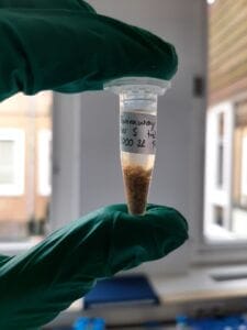 De verzamelde maaginhoud van de vis is voorbereid voor de volgende stap: DNA-analyse (foto door Margot Maathuis).Belangrijke overbrengers van energie