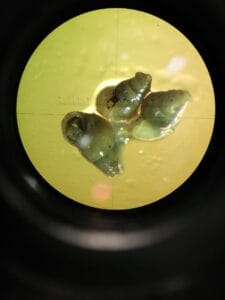 Maaginhoud van haring onder de microscoop onderzocht: wadslakjes waargenomen (foto door Sophie Valk).Centrale rol in voedselweb