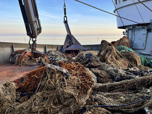 Er zijn deze week zó veel netten geborgen, dat er een vrachtwagen mee gevuld zou kunnen worden. Een visnet dat in zee belandt, houdt niet op met vissen vangen. Dieren zoals krabben en vissen raken verstrikt in het net, en overlijden hierdoor. Wanneer de netten van plastic zijn gemaakt, dan valt dit plastic na verloop van tijd uit elkaar in heel veel piepkleine deeltjes. Die verspreiden en verplaatsen zich, bijvoorbeeld vanuit de Noordzee de Waddenzee in. Dieren kunnen de plastic deeltjes aanzien voor voedsel, of ze per ongeluk inslikken wanneer ze gewend zijn om voedsel uit het water te filteren.