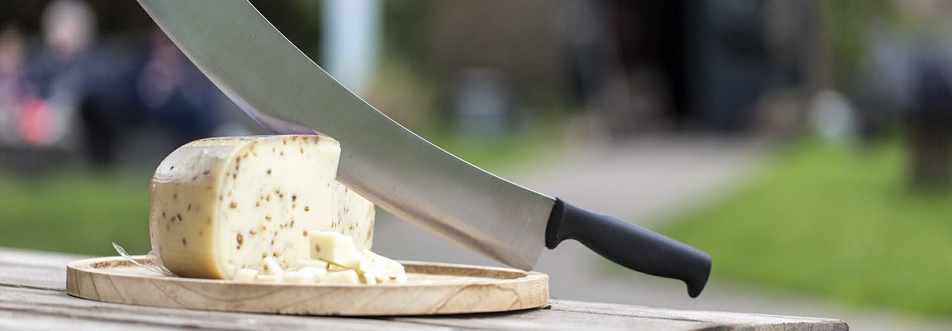 De kruidenrijke weide is de belangrijkste smaakmaker van de Terschellinger schapenkaas. ‘Het gras zit vol plantjes en bloemetjes. Wat de schapen eten heeft invloed op de melk,’ vertelt Jolanda. Ook tijdens het maakproces van de kaas kun je de structuur en de smaak nog beïnvloeden, al is dat minimaal: ‘Er zijn maar een paar dingen die je kunt doen. Bijvoorbeeld als de kaas iets te droog is, dan kun je wat minder lang roeren. Het is echt een kwestie van gevoel. En het is belangrijk om netjes te werken. Ik kom zelf uit de zorg, dus ik was gelukkig al gewend om hygiënisch te werken.’ De kaas van de Terschellinger boerderij mocht zich vorig jaar de ‘lekkerste schapenkaas van Nederland’ noemen. Jolanda bescheiden: ‘Ons bedrijf is helemaal niet zo groot, maar we vinden het leuk om iets bijzonders te doen met onze kaas.’ Naast zachte verse kaas – ‘deze smaakt net als mozzarella’ – en naturel harde kaas, maken ze kaas met fenegriek en zeekraal. ‘Die hebben we gemaakt omdat onze boerderij De Zeekraal heet.’ Er is ook een mixkaas van schapen- en koeienmelk en een koeienkaas die in de bunker op Terschelling West rijpt.