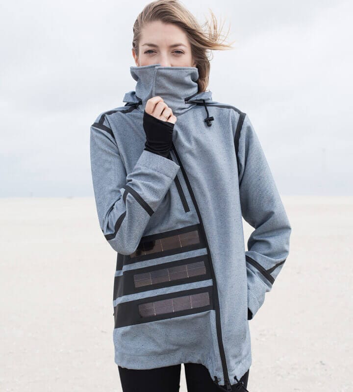 De smartphone is niet meer weg te denken uit het dagelijkse leven van Nederlanders. Tegelijkertijd zijn we ook steeds meer onderweg. Stroom is dan niet altijd voorhanden. Modeontwerpster Pauline van Dongen is al langere tijd bezig om zonnecellen in de textiel van haar kleding te verwerken. De technologie rondom zonnecellen ontwikkelt zich razendsnel. ‘Zonnecellen zijn geen grote tabletten meer, maar worden verwerkt in dunne folies. Dit geeft nieuwe mogelijkheden voor de mode-industrie,’ aldus Van Dongen.