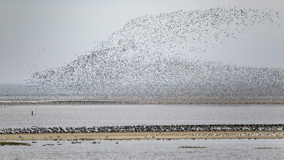 Houd afstand van vogels en zeker wanneer je grote groepen rustende vogels ziet. Bij laag water zoeken wadvogels voedsel op het wad. Bij hoog water rusten ze veelal in grote groepen op zogenaamde ‘hoogwatervluchtplaatsen’. Het is belangrijk om hier extra alert te zijn op verstoring.