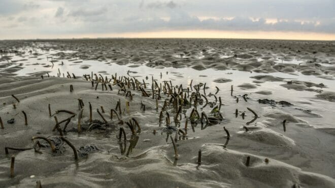Het lijkt heel luxe. Toch is het niet alleen maar gemakkelijk: de dieren die op of in de wadbodem leven, moeten bestand zijn tegen verschillende weersomstandigheden. Denk maar eens aan de brandende zon die in de zomer behoorlijk fel kan zijn. Of juist aan de koude wind en regen en soms sneeuw en hagel in de winter. Ook is de zuurstofvoorziening bij laagwater anders dan bij hoogwater.