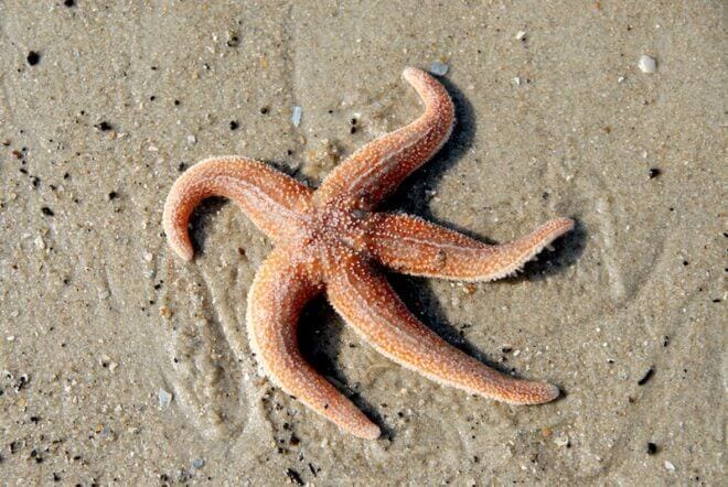 De zeester heeft vijf armen, elk met vele kleine ‘voetjes’ met aan het uiteinde een zuignapje. De mond van de zeester bevindt zich aan de onderzijde, precies in het midden. De zeester eet graag mosselen. Hij breekt de schelp open door afwisselend gebruik te maken van zijn vijf armen. Met twee armen houdt hij de linkerkant van de mosselschelp vast, met twee andere armen de rechterkant. Op het moment dat de zeester moe wordt vervangt hij een arm door de arm die rust heeft. De mossel sluit haar schelp met een sterke sluitspier. De zeester kan door het afwisselen van het gebruik van zijn armen echter net zo lang volhouden tot de mossel opgeeft. De zeester maakt het de mossel bovendien zwaar door de watertoevoer af te sluiten, waardoor de mossel geen zuurstof meer krijgt. Als de schelp open is stulpt de zeester zijn maag naar buiten. Zo wordt de mossel in zijn eigen schelp opgegeten.