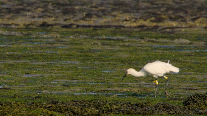 Wat hij wel wist, was waar de lepelaars zich bevonden. Een aantal is namelijk gezenderd, waardoor onderzoekers meer te weten komen over de migratie van de lepelaars, maar waardoor ze ook de dieren makkelijk ter plekke kunnen opzoeken om te observeren. Jansma laat beelden zien van een lepelaar boven de Groningse kwelders, met een klein zwart ‘kastje’ op haar rug. ‘Dat is één van de eerste in Nederland gezenderde lepelaars. Ze heet Sinagote, de lepelaar waar Piersma zijn boek naar vernoemd heeft. Ik heb Sinagote ook in Frankrijk weer kunnen filmen. Het was een heel bijzonder moment om hetzelfde dier daar weer terug te zien.’