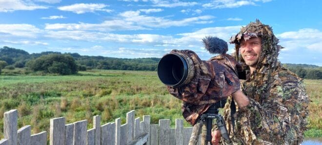Ook filmde hij op de kwelders van Lutjewad langs de kust van Groningen. Een uitdaging. ‘Daar komen heel veel lepelaars samen tijdens hoogwater. Je wilt ze dan niet verstoren, dus moesten we ons al vier uur voor hoogwater verstoppen in een schuiltentje en konden we er pas uit als ze weg waren, vaak nog eens vier uur later. Maar het was wel geweldig om daar zo dichtbij te mogen zijn en alles vast te kunnen leggen.’
