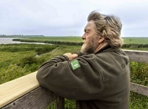 Harde grenzen‘Dit was in 1960 nog een wadplaat die bij vloed onder water stroomde’, zegt Henk Hut terwijl hij over de bloemrijke graslanden uitkijkt nabij Activiteitencentrum Lauwersnest. De ecoloog bij Staatsbosbeheer, officieel net met pensioen, kent het gebied op zijn duimpje. Niet alleen zoals het nu is, maar ook zoals het was voor de Lauwerszee werd afgesloten. ‘Op sommige plekken zie je aan de randen en langs voormalige geulen zelfs nog oude schelpenbanken, dit was gewoon een echt onderdeel van het systeem van de Waddenzee. Toen de dam er kwam en hier een vast waterpeil werd ingesteld, is de hele dynamiek uit het gebied verdwenen. Nu zie je hier dus harde grenzen langs het water waar vroeger slikplaten langzaam opliepen tot een kwelder.’