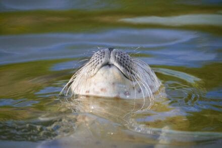 De GEWONE ZEEHOND ligt net als de grijze zeehond vaak op zandbanken te rusten en dommelt daarbij geregeld in slaap. Maar ze kunnen ook gerust in het water een dutje doen. Daarbij dobberen ze in verticale houding met hun hoofd net boven water op de golven.