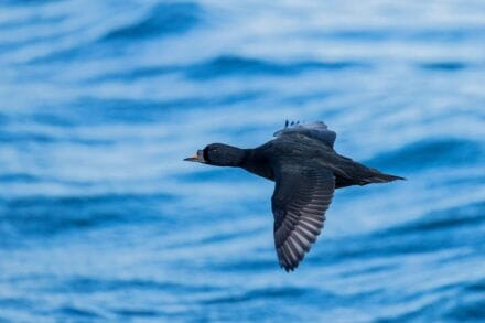 Zwarte zee-eenden overwinteren op zee voor de Waddeneilanden, meestal onzichtbaar vanaf de kust. Met de geheimzinnige zeevogels gaat het niet goed omdat ze worden verstoord door schepen.